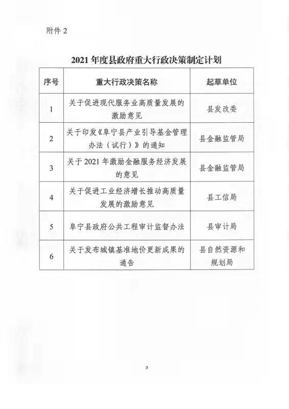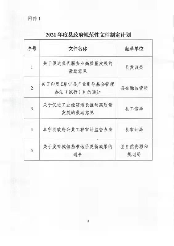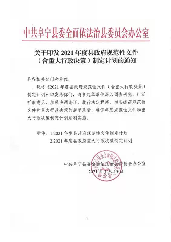 关于印发2021年度县政府规范性文件(含重大行政决策)制定计划的通知