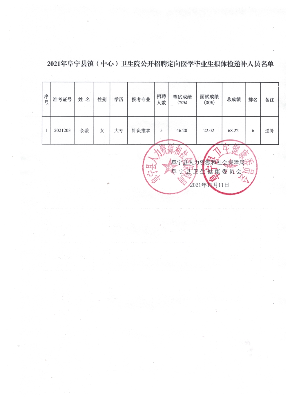 2021年beat365手机安卓版_365登录次数限制_365beat版app镇(中心)卫生院公开招聘定向医学毕业生拟体检递补人员名单公布