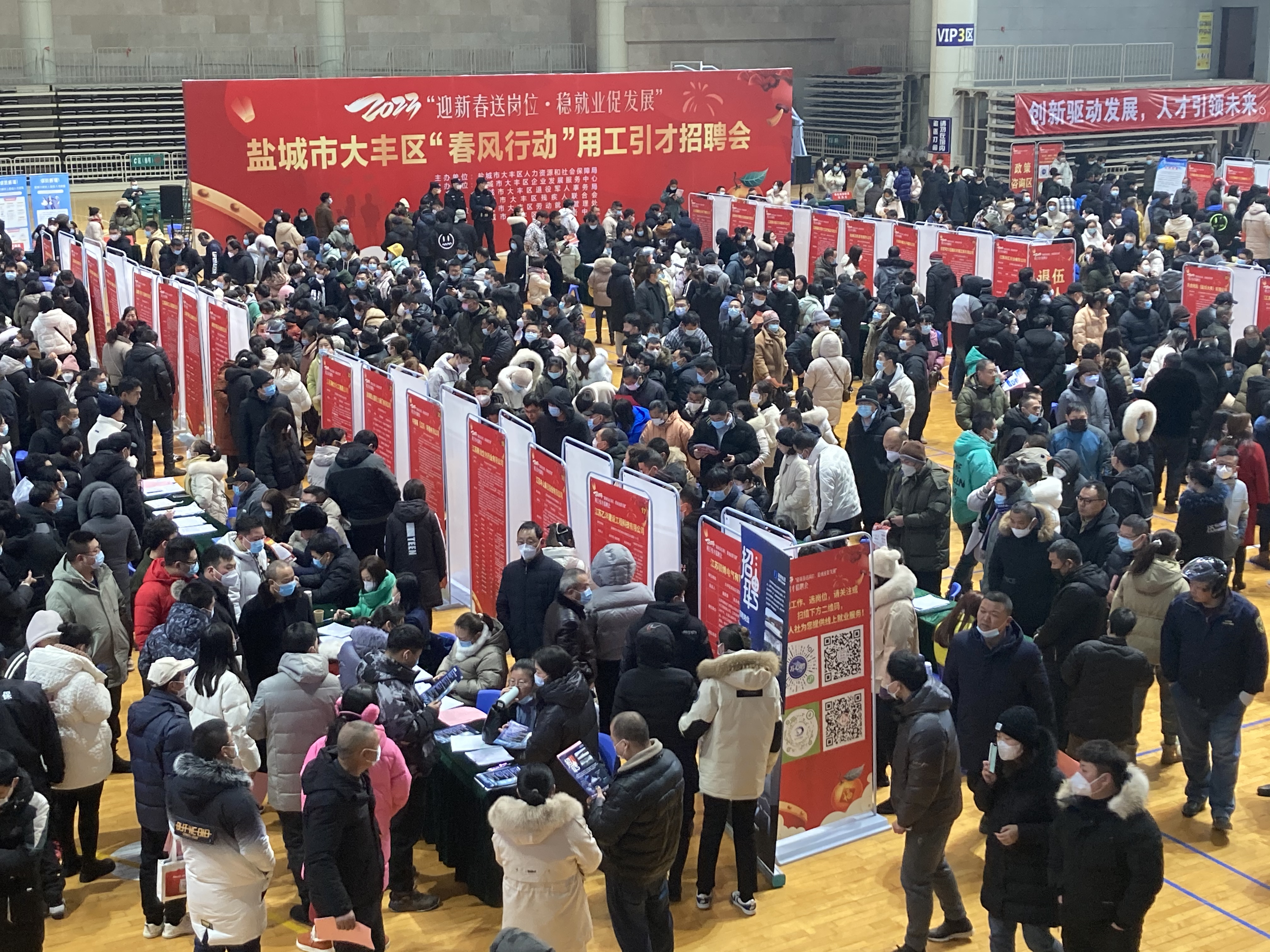 天寒地冻挡不住返乡求职者的热情。1月27日上午,盐城市大丰区奥体中心体育馆人潮涌动,大丰区2023年“创响江苏”春风行动暨“迎新春送岗位、稳就业促发展”用工引才招聘会在此拉开盛幕。