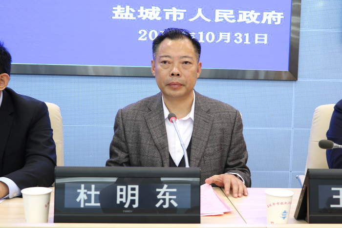 为进一步扩大世界自然遗产的影响力,丰富人民群众精神文化生活,市委、市政府决定11月17日举办2019“大洋湾”杯中国盐城黄海湿地公路自行车赛。今天,我们在这里举行赛事的新闻发布会,我们很高兴邀请到市体育局副局长杜明东先生、市城投集团副总经理黄伟先生、市体育实业发展有限公司董事长王海东先生,另外还有市内外媒体的记者朋友们参加这次发布会。