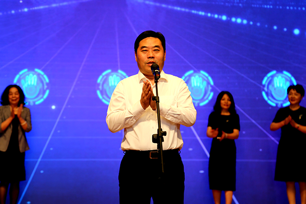 主持人:有请王市长、王会长、张会长、吴局长、王加淦调研员、刘书记、张书记、王爱国调研员、高翔董事长移步电子大屏前,将手放在屏幕手印上,心往一处想,劲往一处使,共同开启家政服务劳务品牌建设的新征程!让我们一起倒数5个数:5、4、3、2、1。