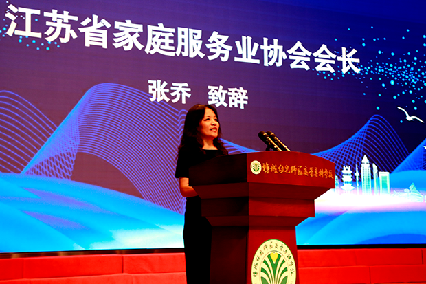 主持人:感谢吴局长。下面,有请江苏省家庭服务业协会张乔会长致辞。
